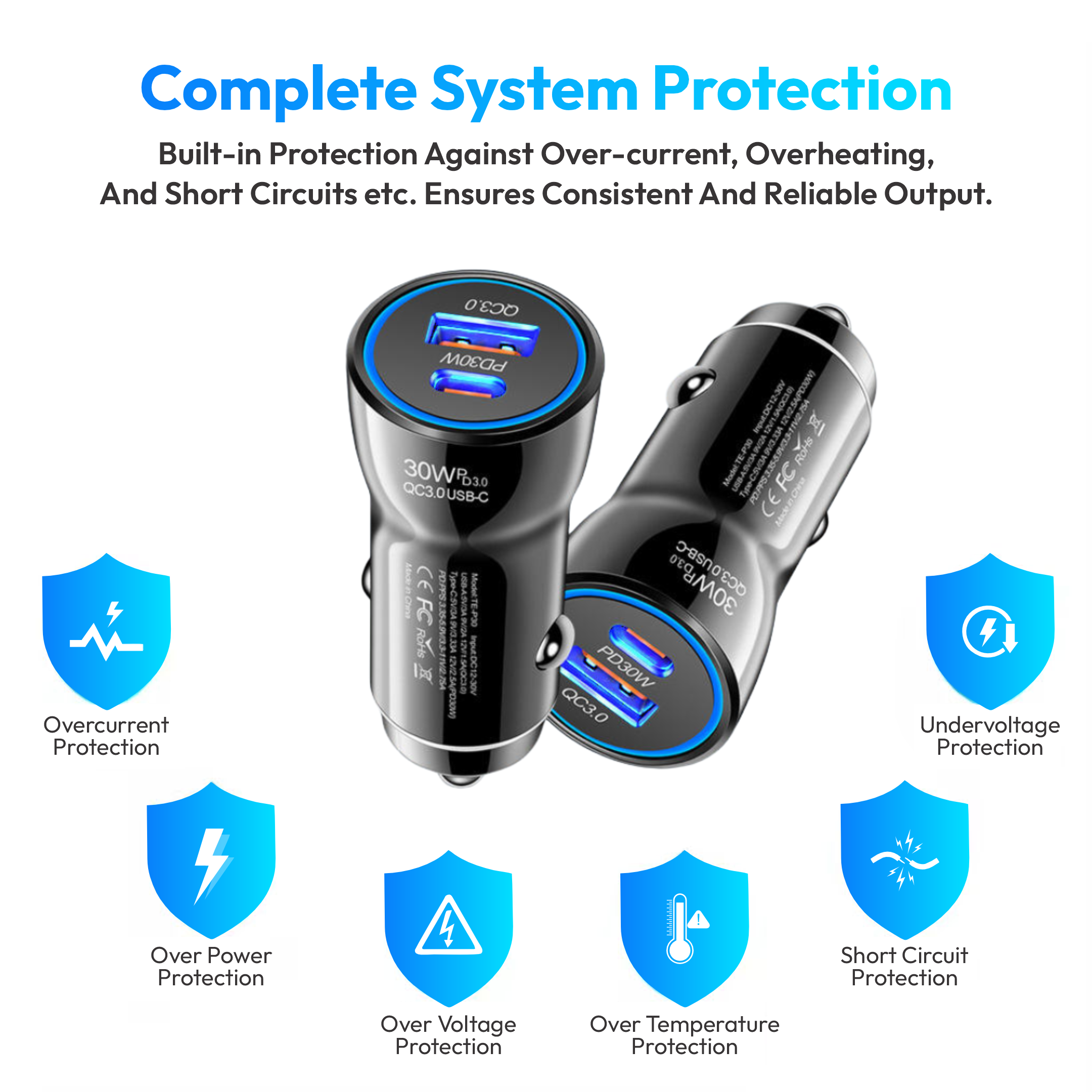Featuring dual charging ports, this charger allows you to charge two devices at the same time without reducing speed. With advanced Quick Charge and PD fast charging technology, it can power up your smartphone from 0% to 65% in just 30 minutes. It ensures strong power output, making it ideal for users who need quick and reliable charging on the go.