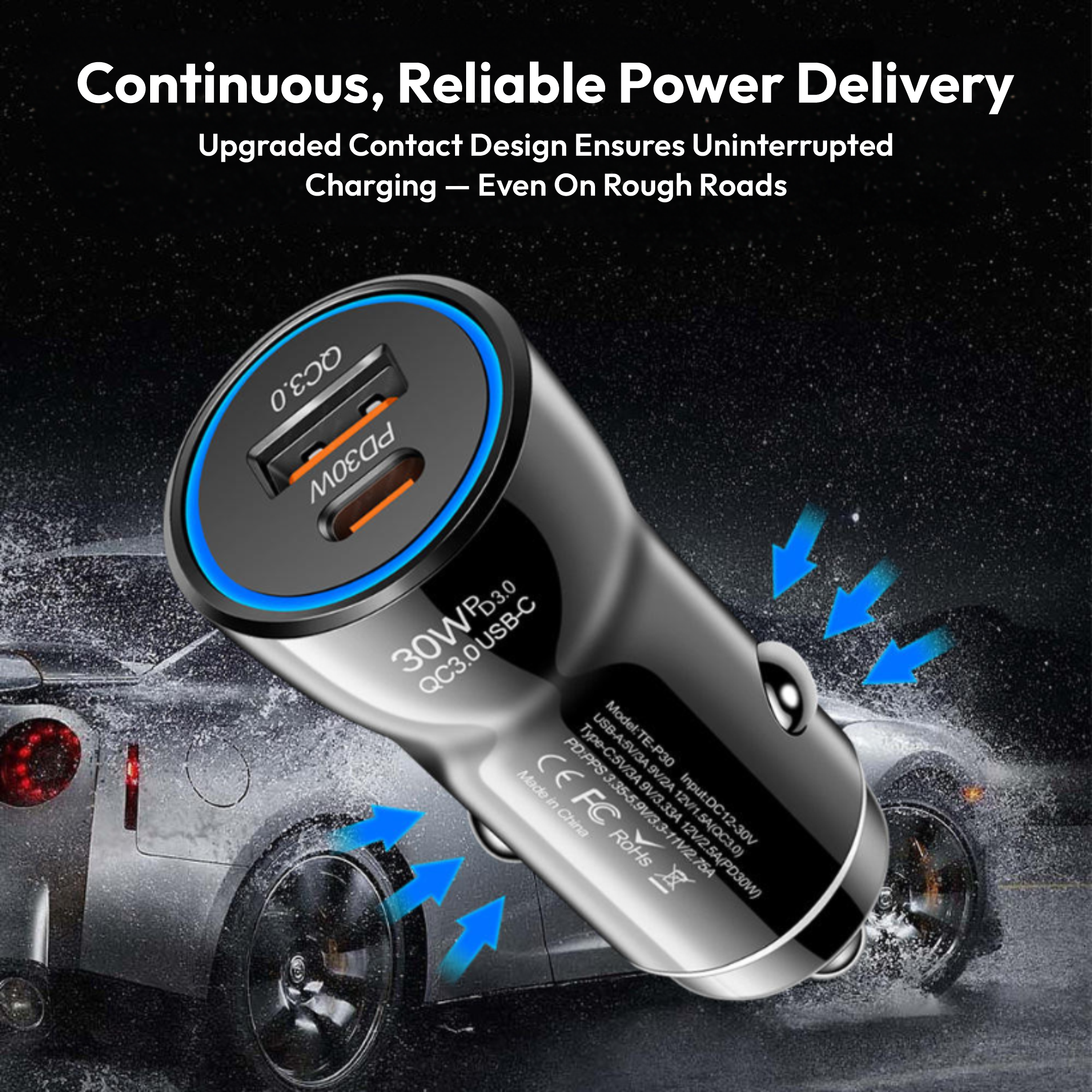This fast car charger is designed to work seamlessly with a wide range of devices including iPhone, Android, Samsung, Huawei, and more. Whether you’re using the latest flagship model or an older device, the intelligent output adjustment ensures optimal charging performance every time. Simply plug it into your car’s power socket and enjoy hassle-free charging during your daily commute or long drives.